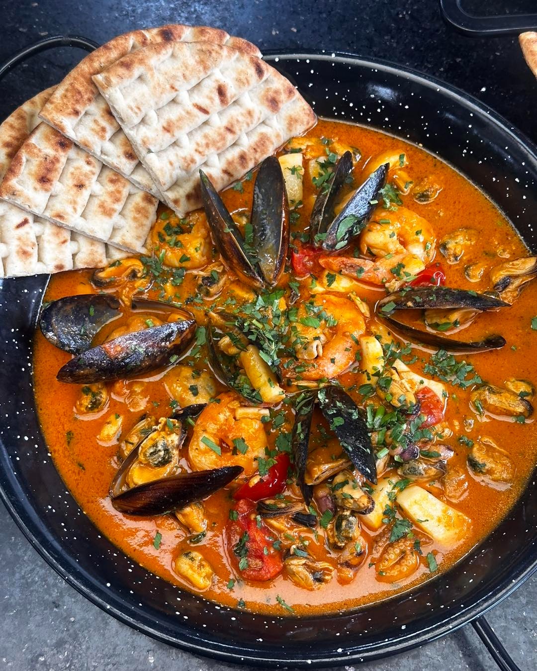 Creveţi, midii, baby caracatita roşii, mix de fructe de mare, cherry, unt, usturoi, părunjel, chifle