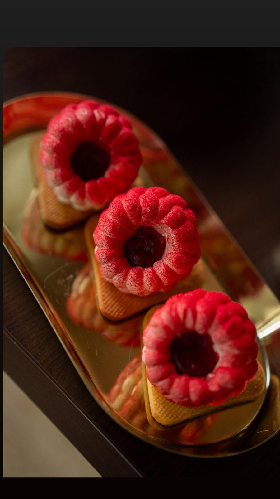 Ciocolată albă, mascarpone, smântână lichidă pentru frișcă, piure de zmeură, gelatină, colorant alimentar, unt, cacao, făină, ou, lapte